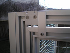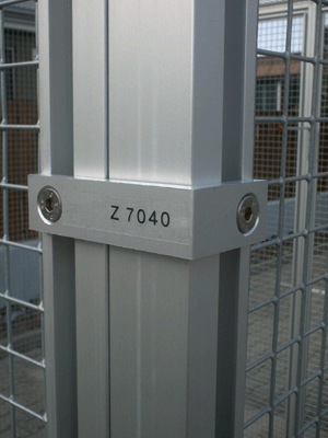ZubehörAufgrund des Rahmenprofils ist das Gehege meist innerhalb weniger Minuten aufgebaut oder zerlegt. Auf jeder Seite werden mindestens 2 Winkel mit jeweils dem nächsten Element verbunden, entweder aneinander mit einem U-Winkel oder "ums Eck" mit einem L-Winkel (s. Z 7040).